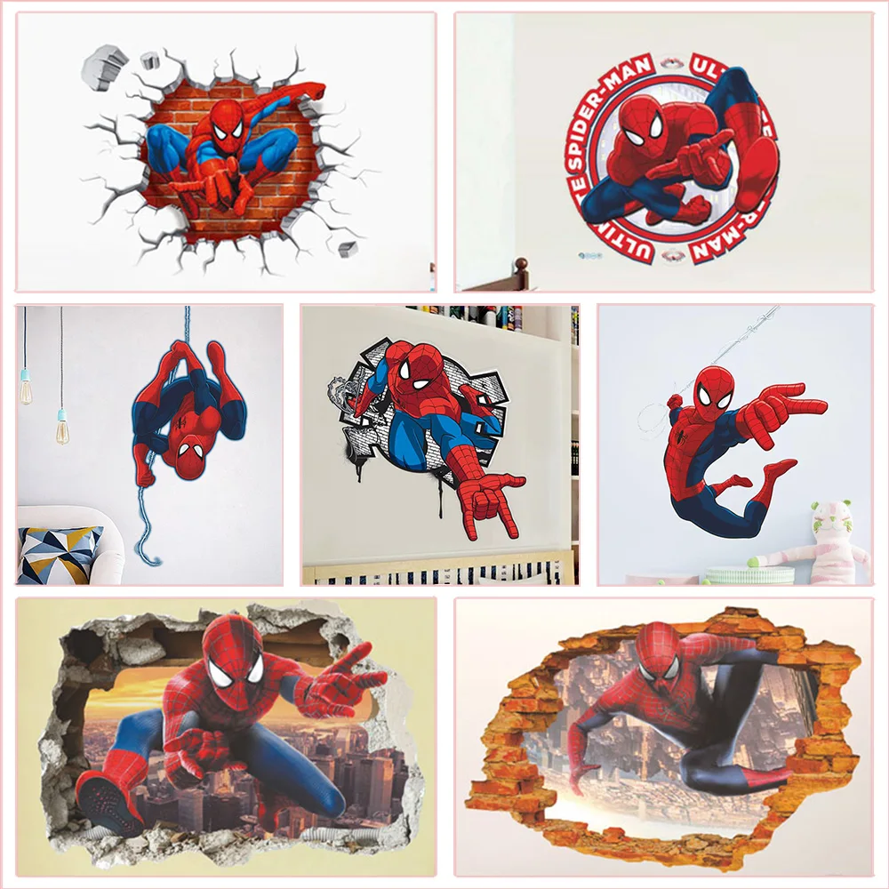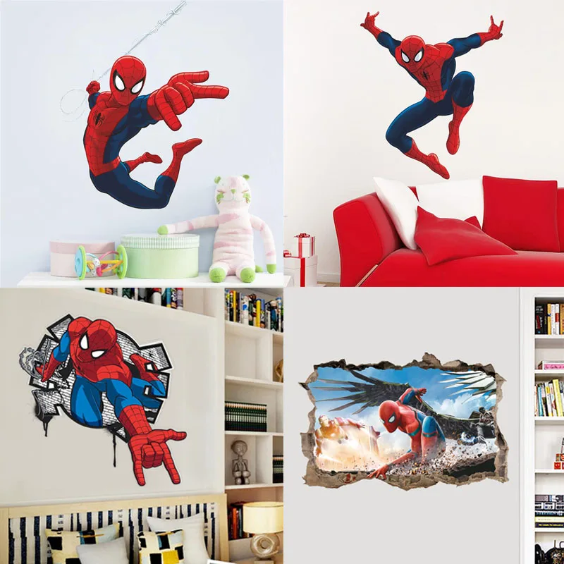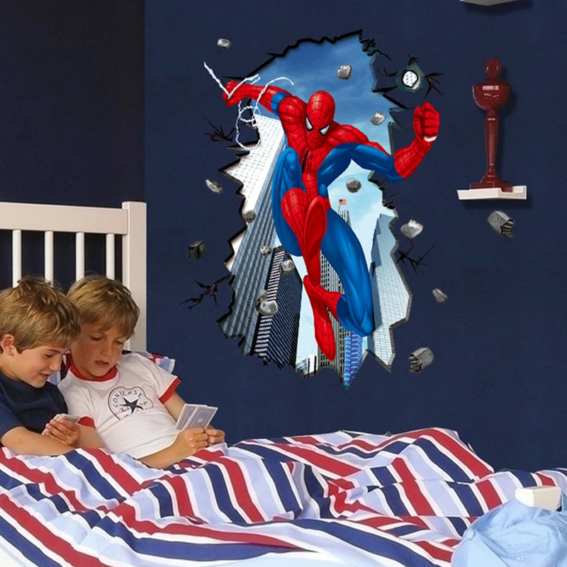 3D человек-паук супер герои настенные наклейки для детской комнаты ...