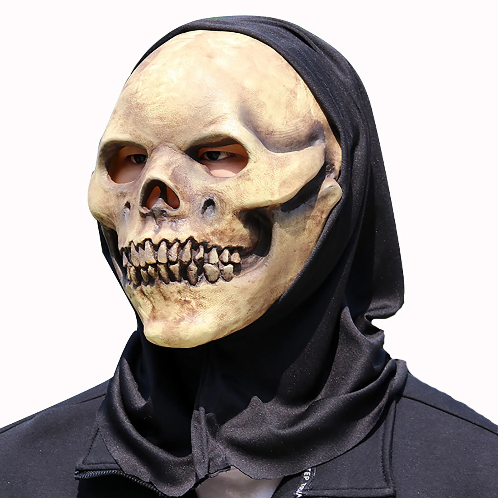 Маска Хэллоуин с подвижными челюстями и черепом на всю голову страш...