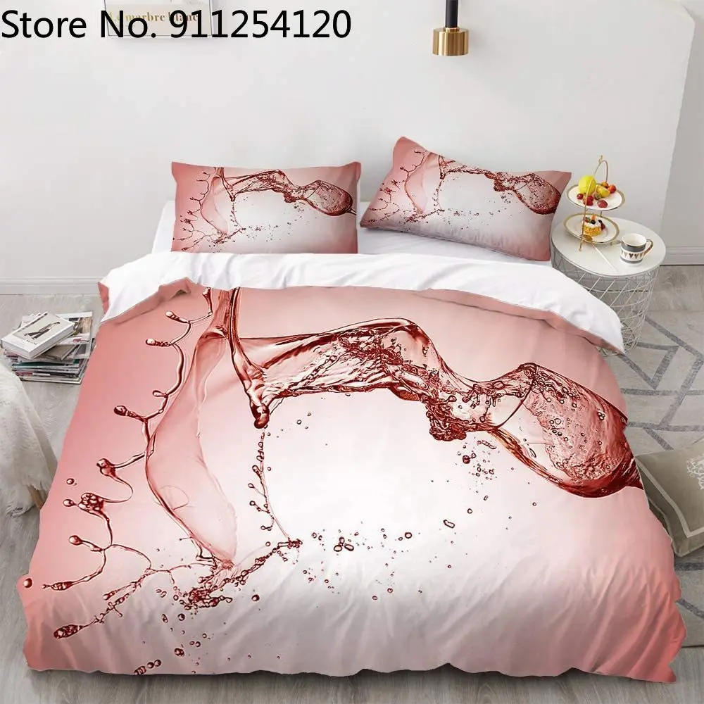 Винный жидкий набор постельного белья с 3D принтом, набор постельного белья для взрослых, подарок друзьям, пододеяльник, набор постельного белья на День святого Валентина, 2/3 шт. для дома
