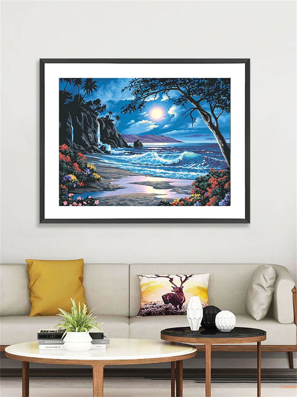Алмазная 5D картина сделай сам, пейзаж, закат, пляж, водопад, полны...