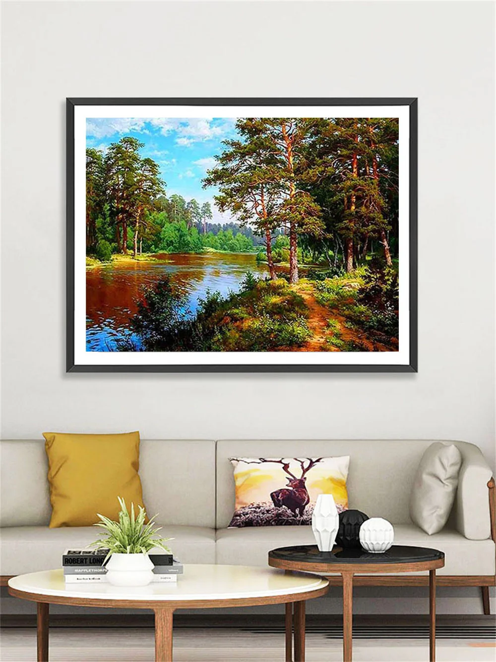 Картина с алмазами, пейзаж, квадратныйкруглый пейзаж, картина для с...