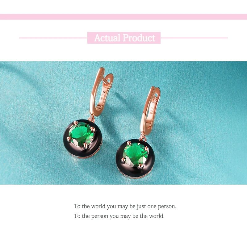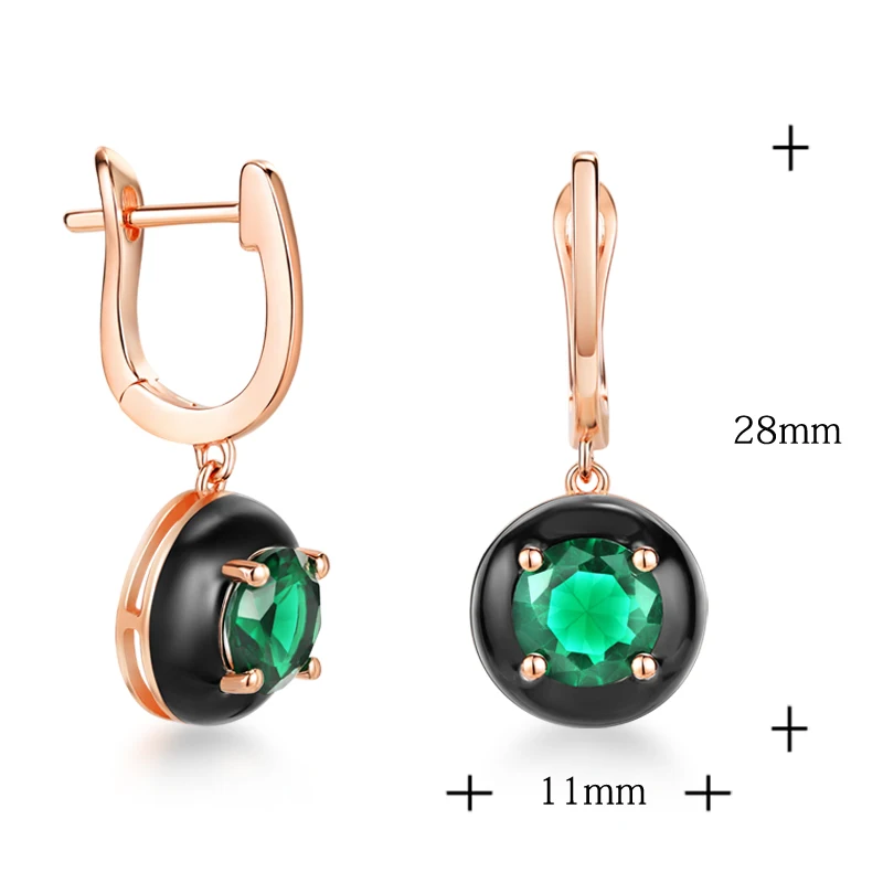 Женские серьги-подвески из серебра 925 пробы, с зеленой эмалью