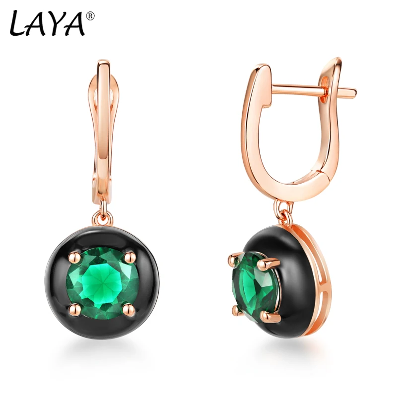 Женские серебряные серьги Laya, из чистого серебра 925 пробы, с зелеными кристаллами, с эмалью, в стиле ретро, 2021