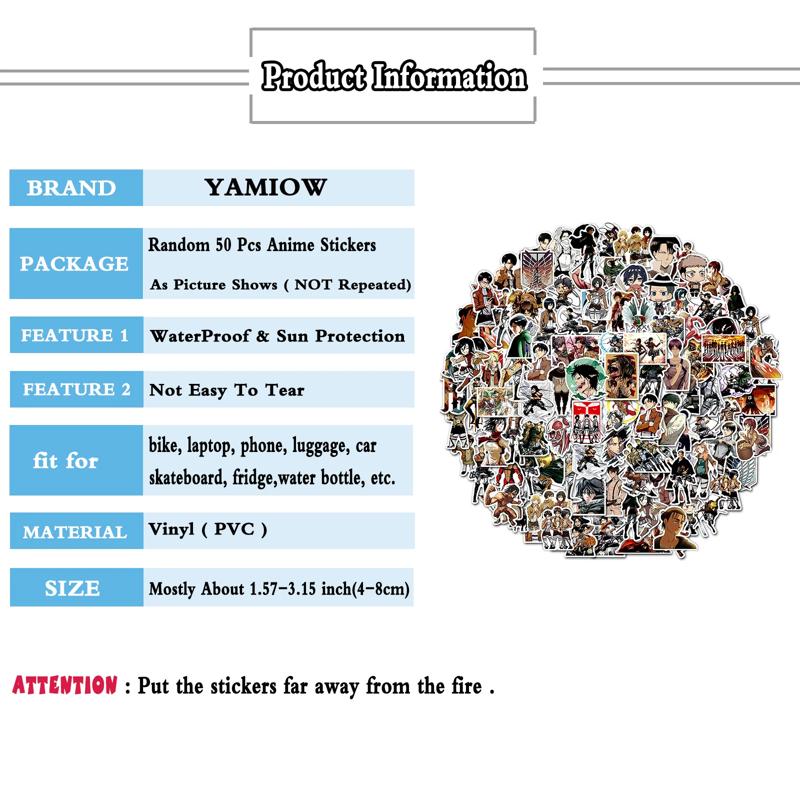 YAMIOW Attack on Titan аниме-наклейки случайные 50 шт. Наклейки граффити для ноутбука гитара скейтборд багаж водонепроницаемая наклейка игрушки