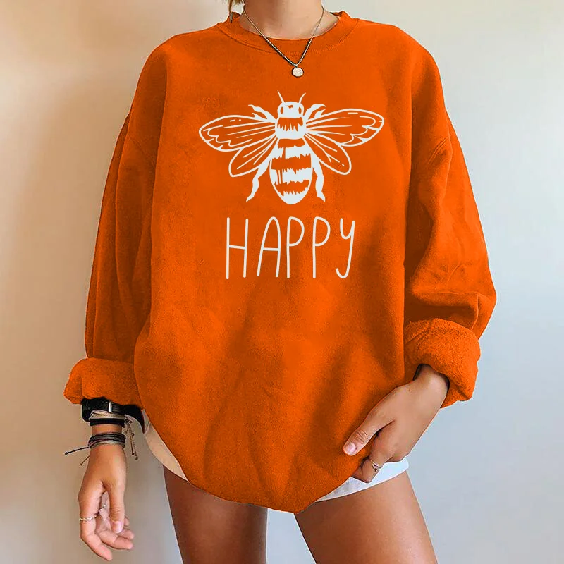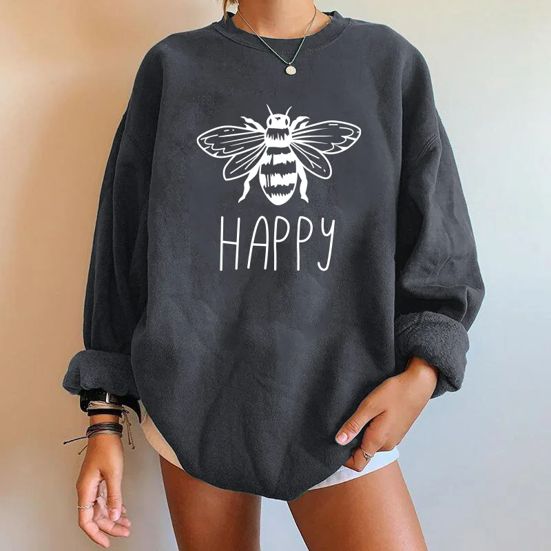 Женские свитшоты с принтом Happy Bee, свободные свитшоты с длинным рукавом, повседневные топы в стиле Харадзюку, женская уличная одежда