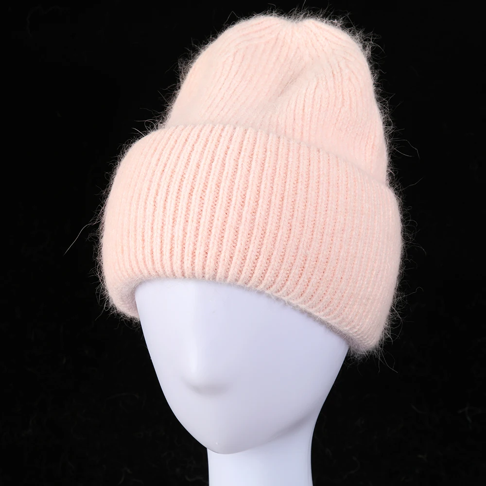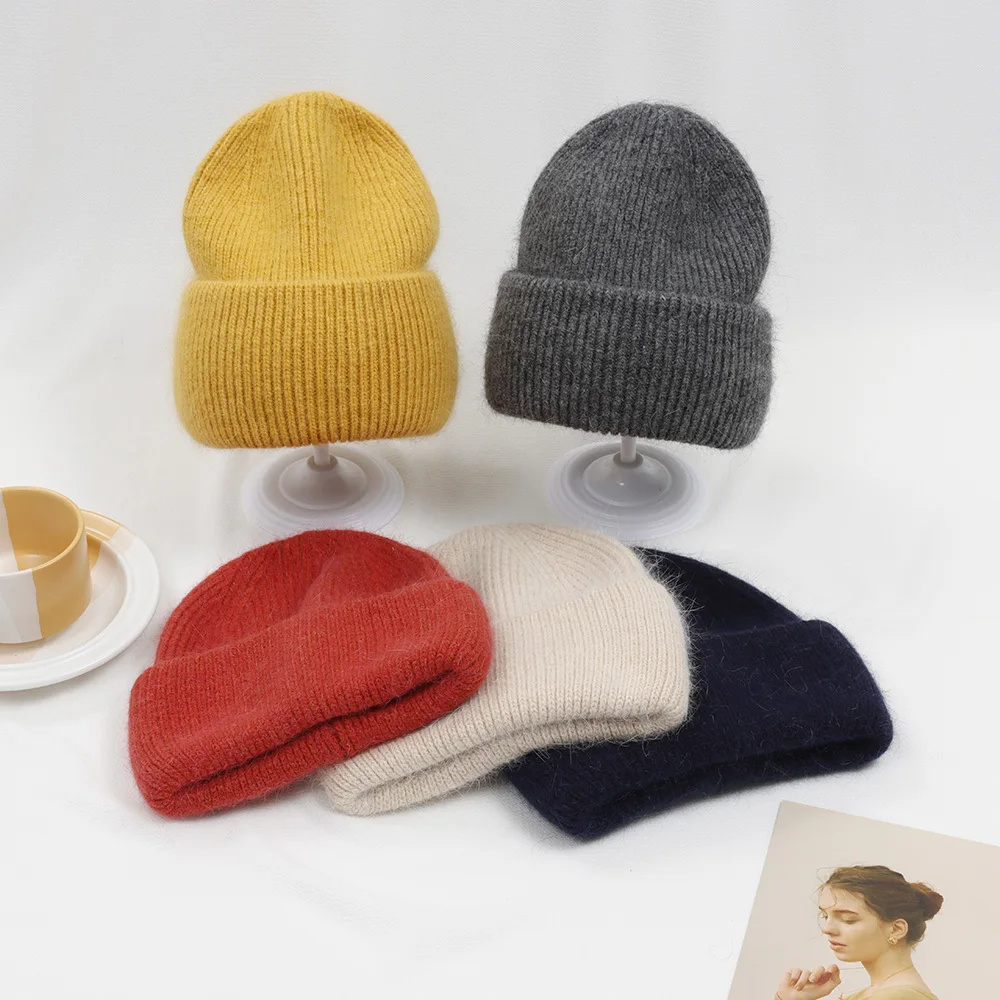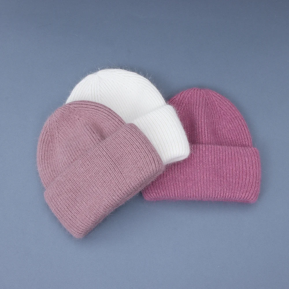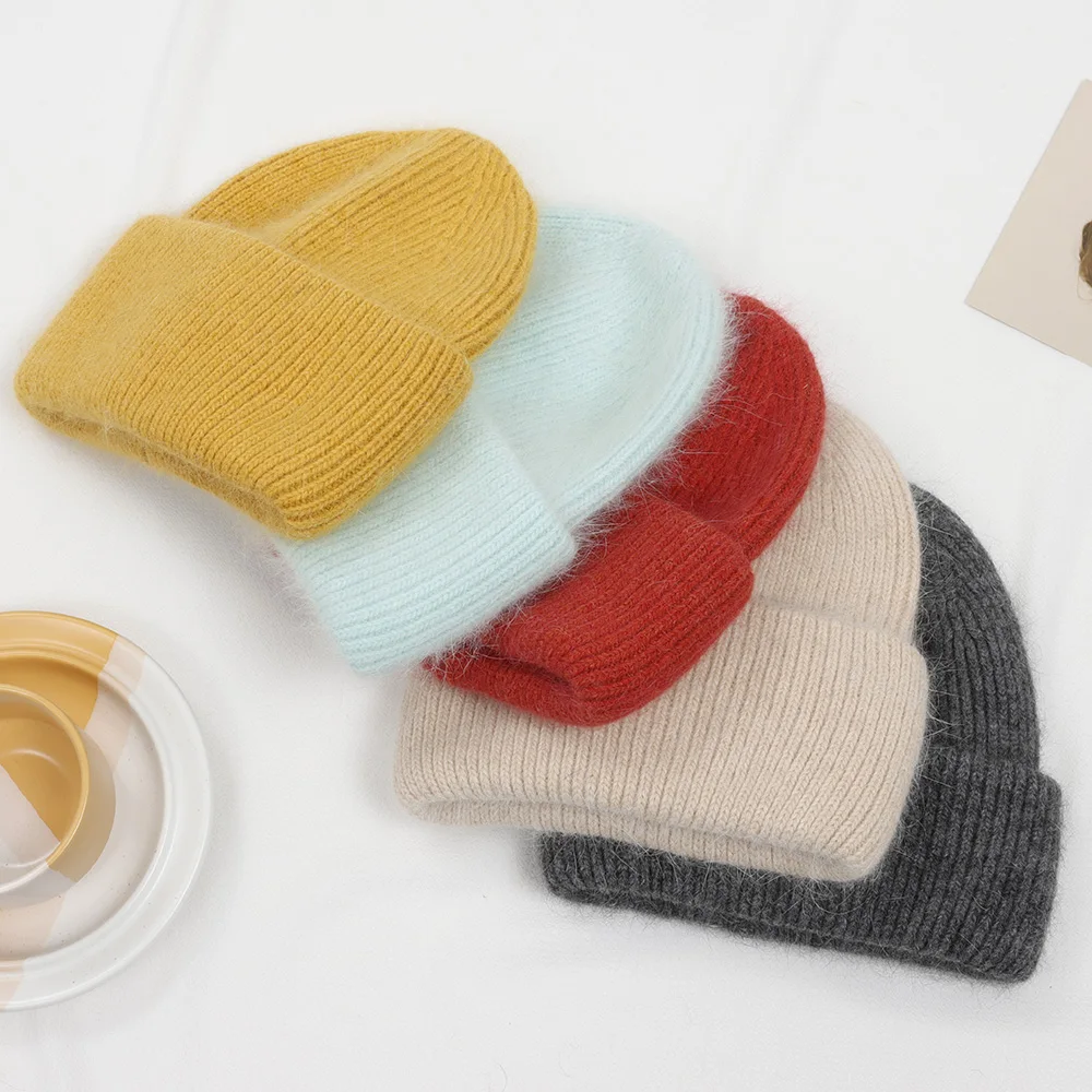 Новые модные однотонные шапки унисекс из натурального кроличьего меха, зимняя шапка для женщин, вязаная шапочка, акриловые женские осенние теплые шапочки
