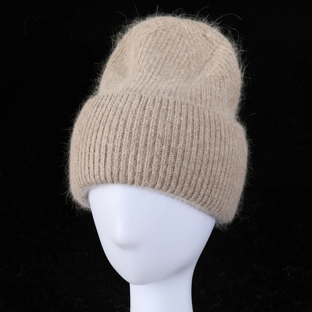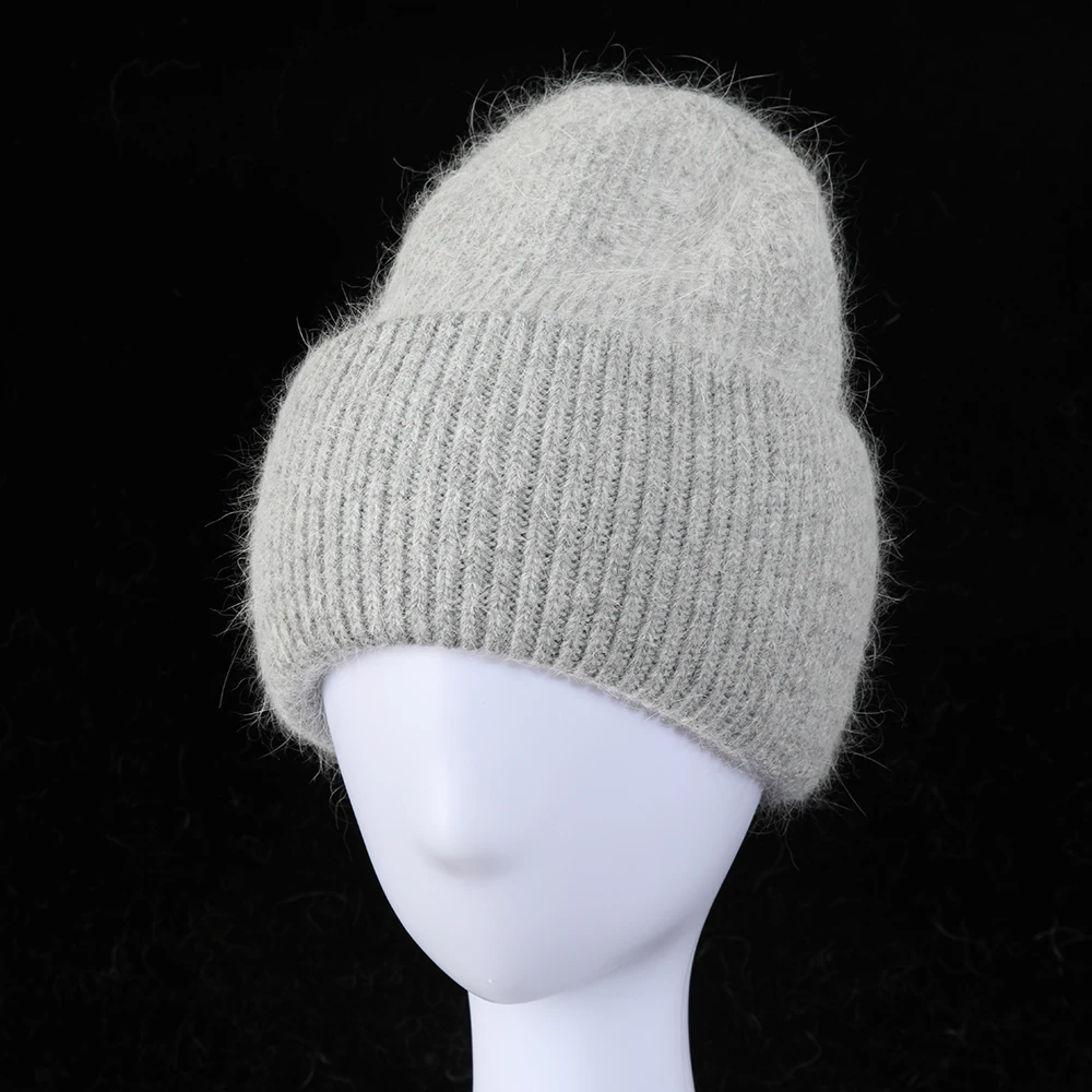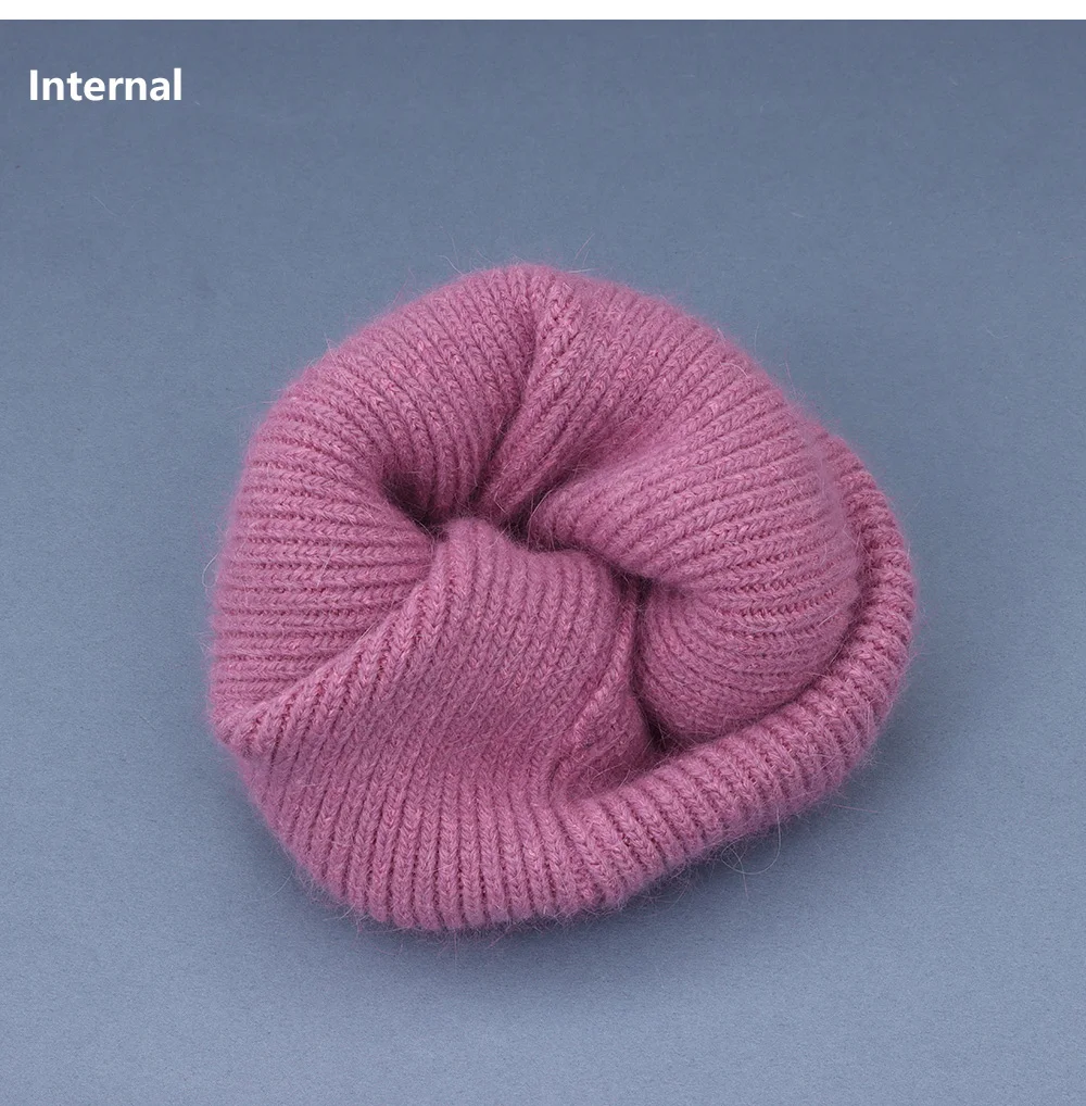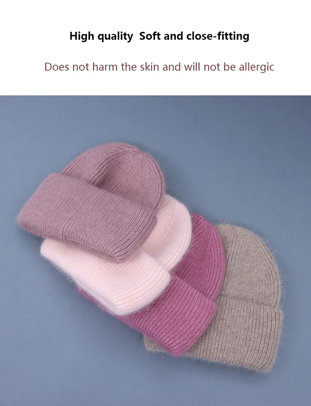 Новые модные однотонные шапки унисекс из натурального кроличьего меха, зимняя шапка для женщин, вязаная шапочка, акриловые женские осенние теплые шапочки