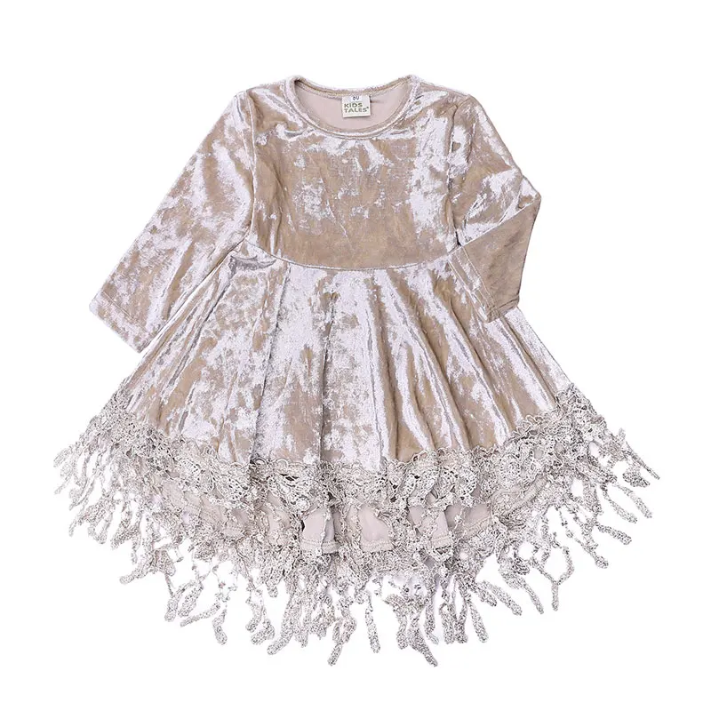 Весна-осень, модная детская одежда, платье для девочек, золотые бархатные Детские платья для девочек, детские платья с длинным рукавом и бахромой