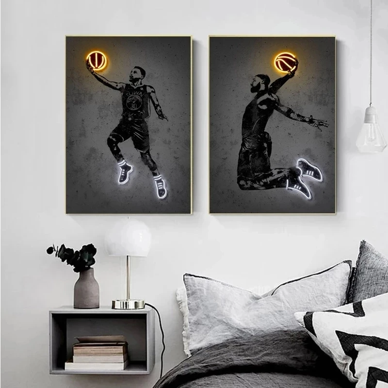 Абстрактная Картина на холсте баскетбольная звезда черная белая Настенная картина спортивные плакаты и принты картина для декора гостиной