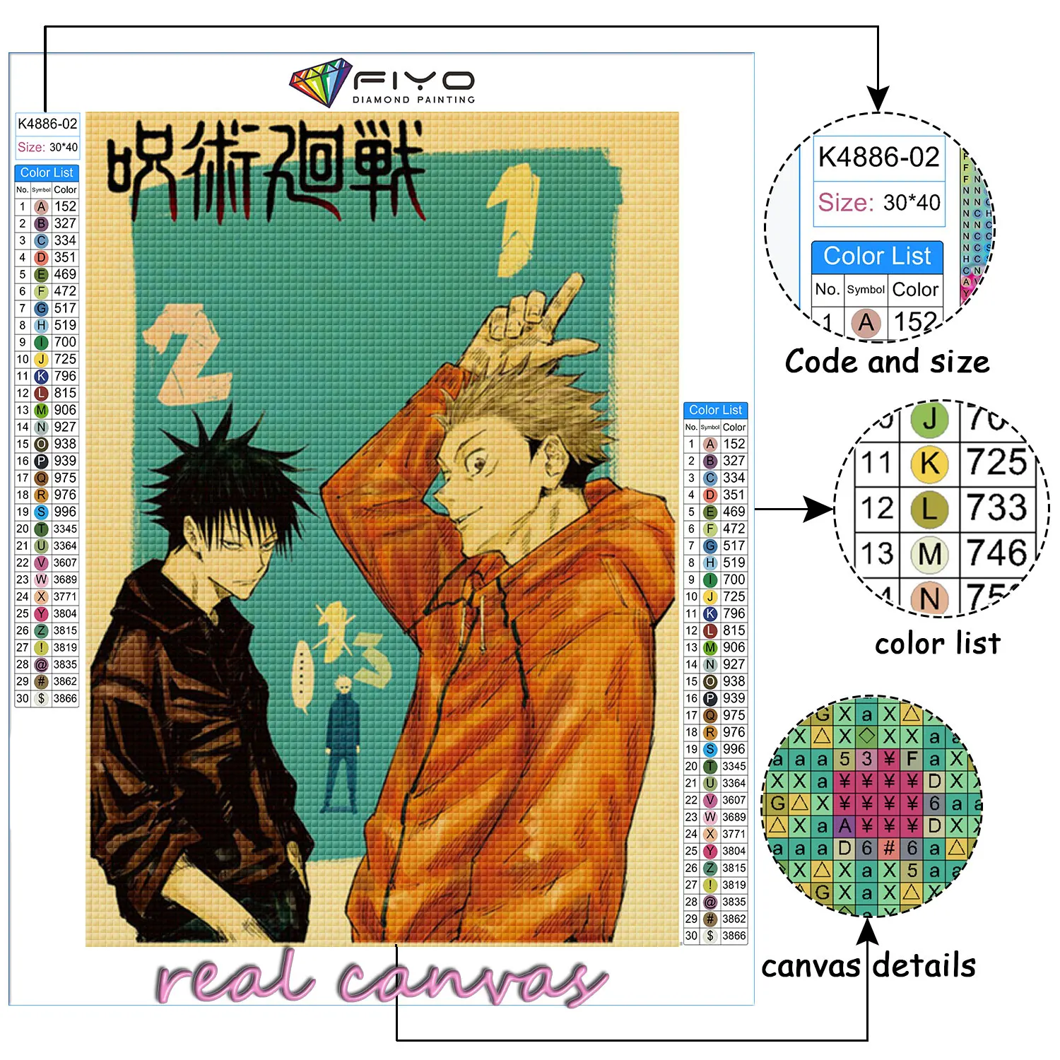 【 Площадь сверла 】: Полностью квадратная/круглая Алмазная мозаика Аниме Jujutsu Kaisen