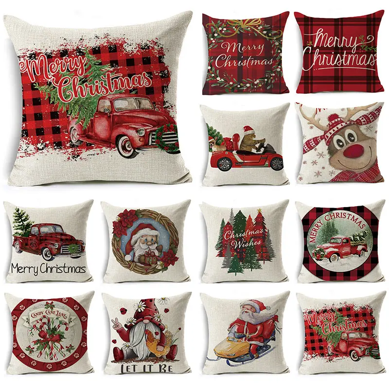 Рождественская наволочка с мультяшным рисунком, льняное украшение, рождественский подарок, наволочка для подушки, подходит для автомобиля, дивана, наволочка 45 см * 45 см
