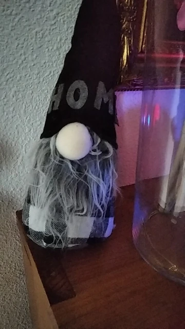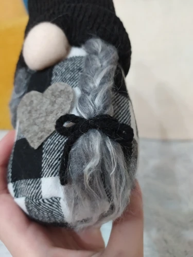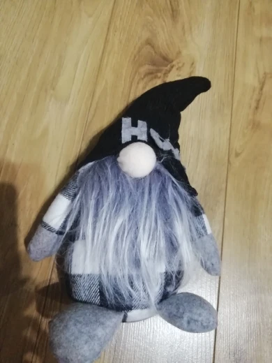 красивый гномик, пришла посылка за 2 недели, очень рада этому. качество довольно хорошее, нужно только почистить чуть-чуть от волос. волосы - косички немного лезут, но не критично. незнаю должна ли шапочка сзади быть так на бок, скорее всего просто брак, но спор открывать не буду, я вполне довольна. внизу, на дне гномика шарики, за счёт чего он очень хорошо стоит и не падает, тяжеленький. спасибо продавцу за быструю отправку, рекомендую!