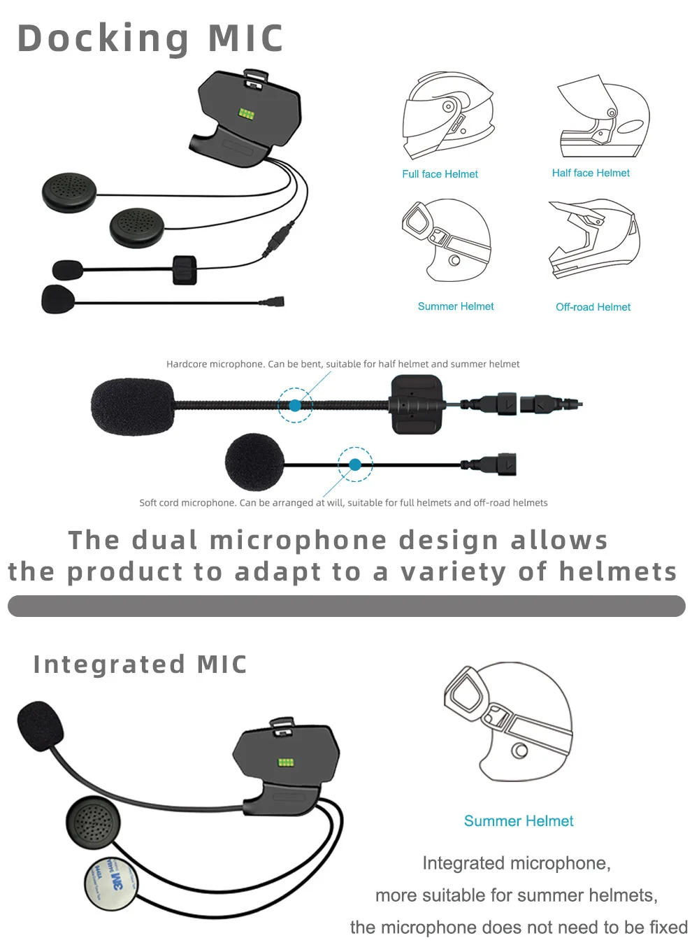 Вставьте гарнитуру и микрофон в шлем-подходит для всех стандартных ушей шлема