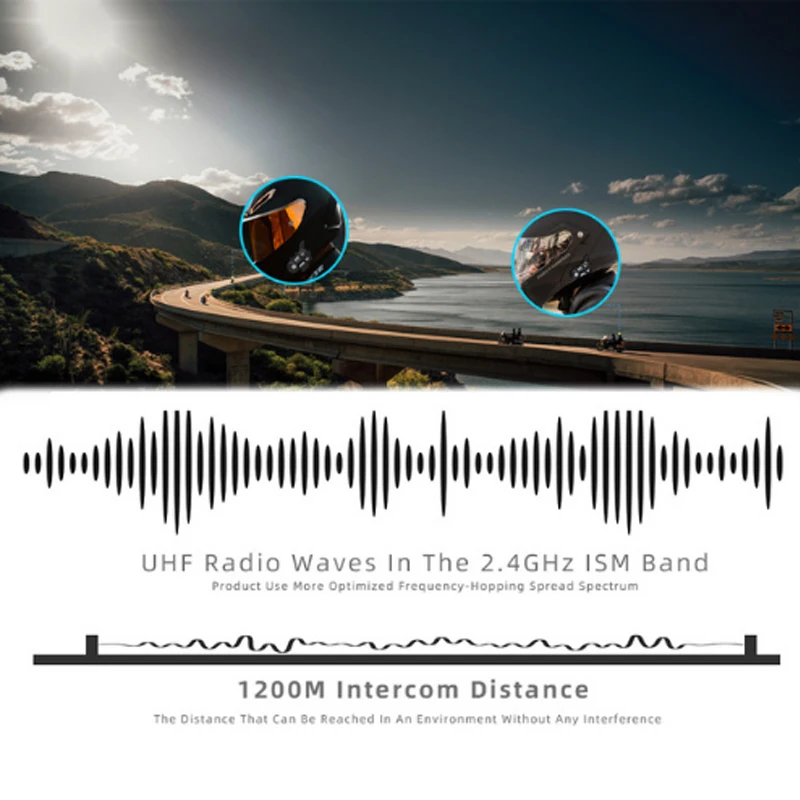 1. Портативная рация на расстоянии 1200 метров, шлем для мотоцикла, снегоходов, лыж, квадроциклов и других Bluetooth комплектов рации.