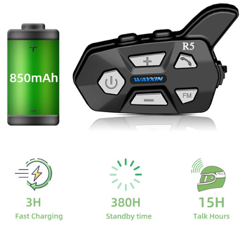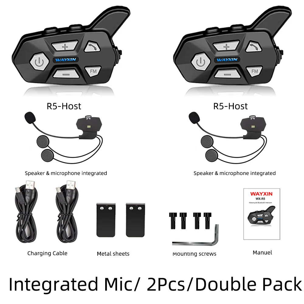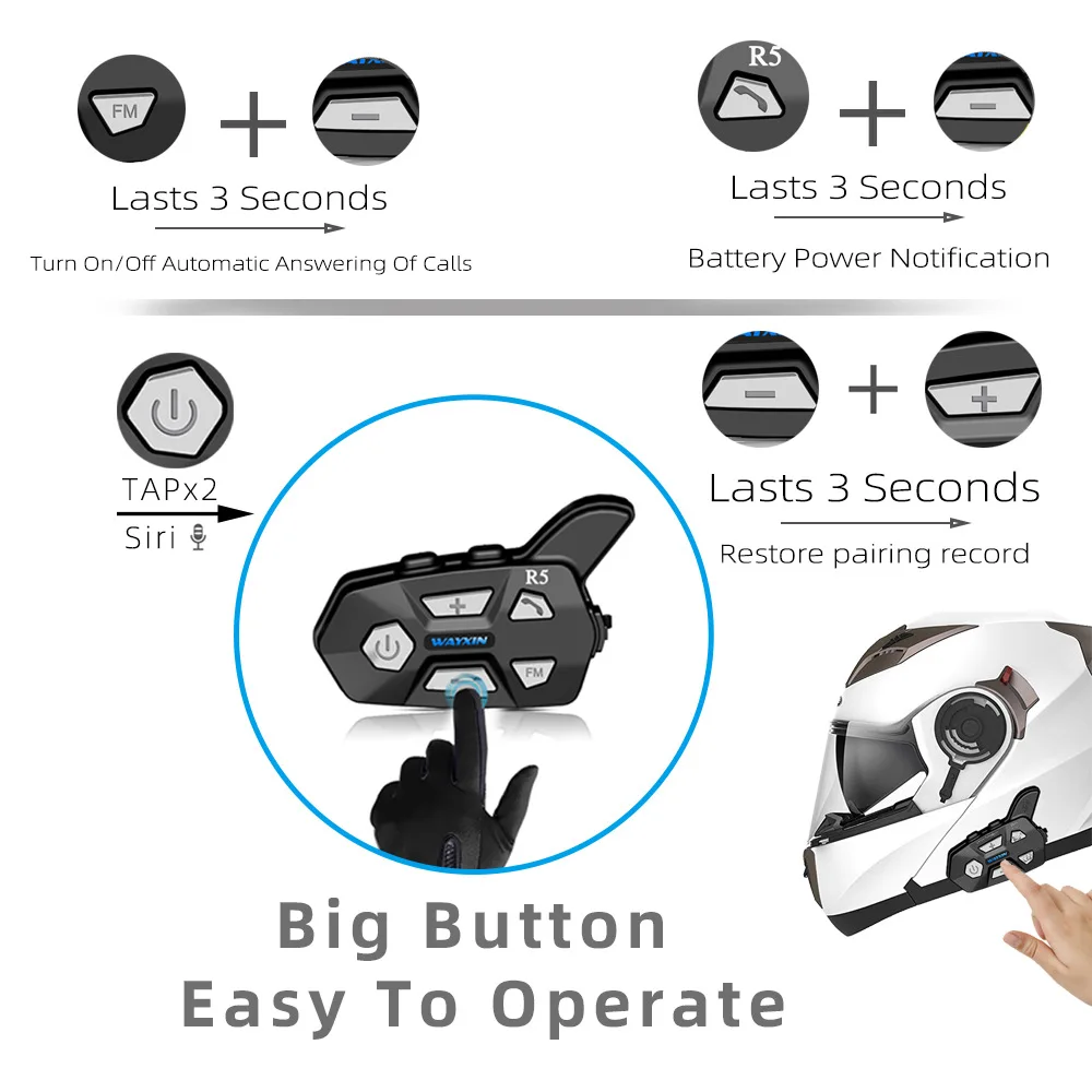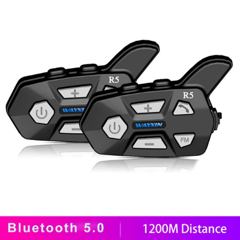 WAYXIN R5 Беспроводной мотоцикл Шлемы-гарнитуры Водонепроницаемый IP67 1200m 2 people intercom гарнитура голосовой помощник/полный диапазон FM радио