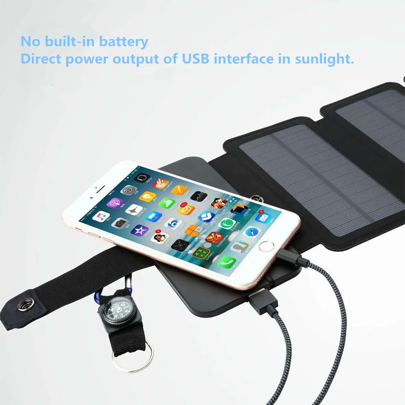 Портативное солнечное зарядное устройство, солнечное зарядное устройство для смартфонов электронного оборудования и т. д. Нет встроенной батареи, безопаснее в сумке.Размер: 155x90x29ммЦвет: черныйЗарядное устройство: солнечная панель 4 складной 7 Вт, 5 складной 10 Вт.Входное напряжение: 5 В/2 А.Выходной ток: 5 В/2 А.