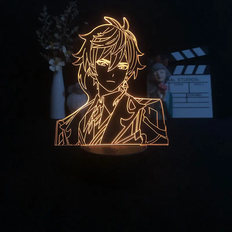 3D ночной Светильник с Управлением по Bluetooth для яркого основания, меняющий цвет, детский домашний подарок Genshin Impact Zhongli, игровой Декор
