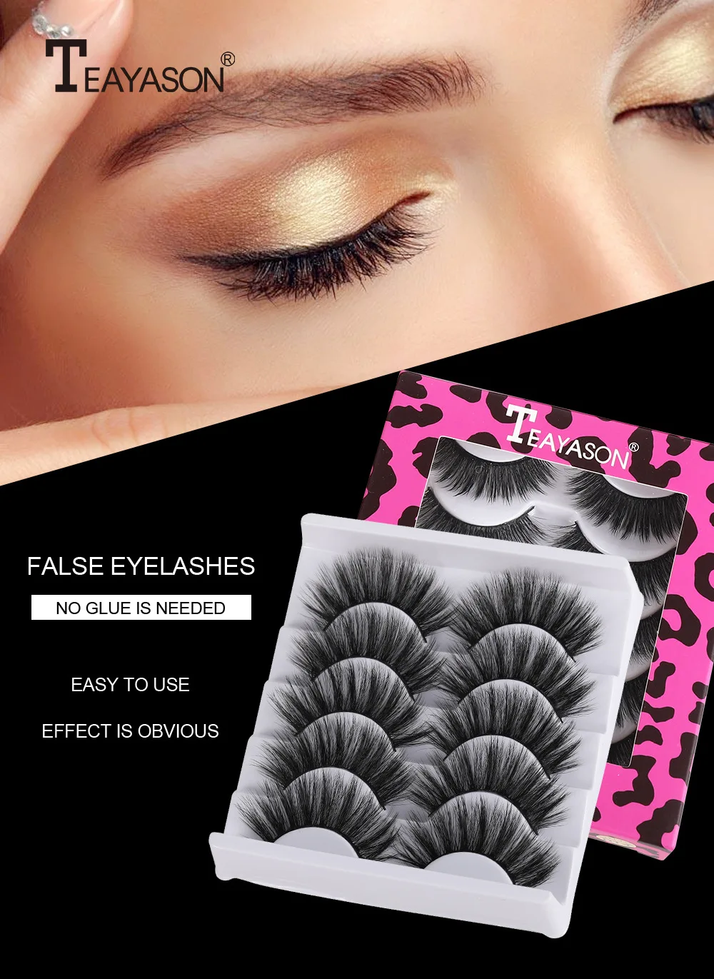 Норковые накладные ресницы TEAYASON, 5 пар, мягкие густые натуральн...