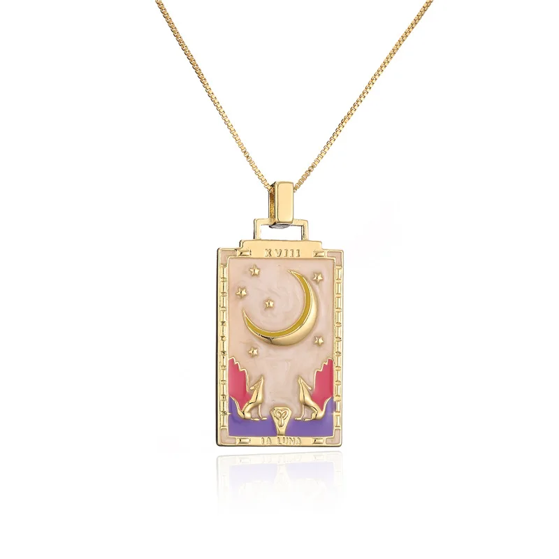 Винтажное ожерелье Таро Солнце Луна картина маслом подвеска женское ожерелье винтажное медное микро-инкрустированное этническое стильное ювелирное изделие