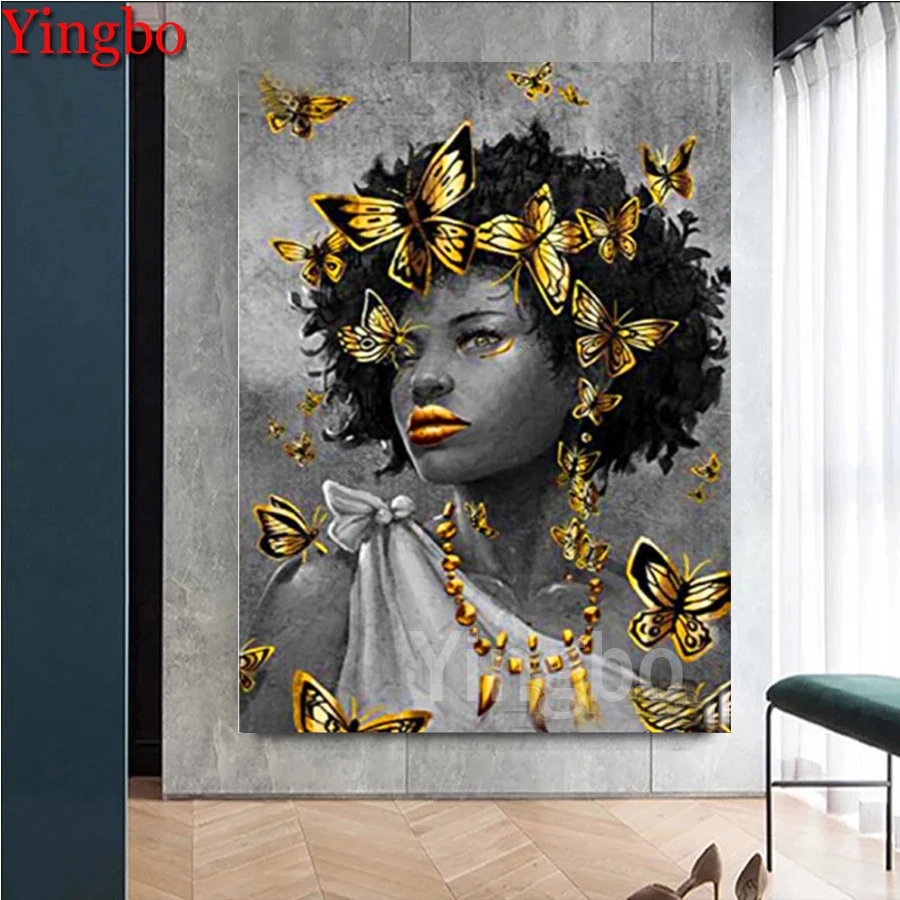 Алмазная живопись, африканская фантазия, Бабочка, Золотая женщина, полный квадратный Набор для вышивки, Алмазная мозаика, искусство стразы, домашний декор