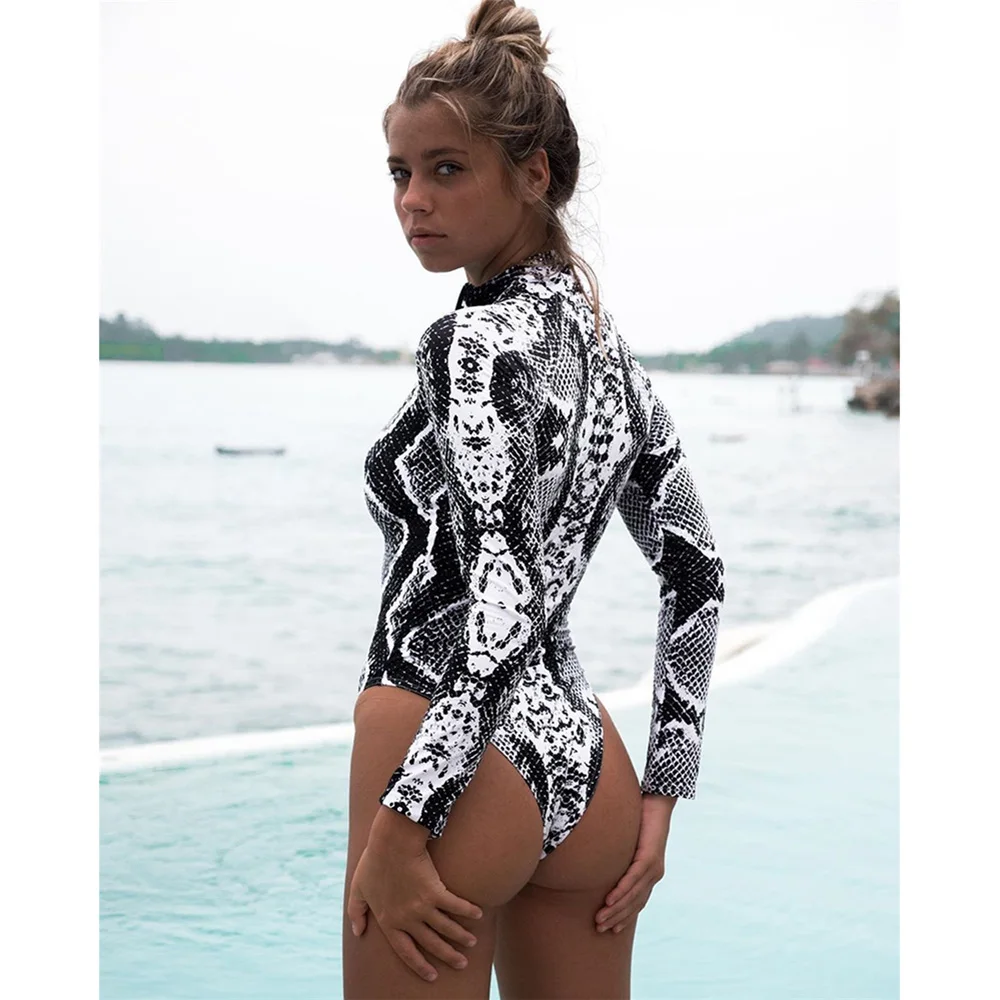 Женский слитный купальник с длинным рукавом, Леопардовый купальник, винтажный полосатый монокини с открытой спиной, купальный костюм с фламинго, боди, монокини