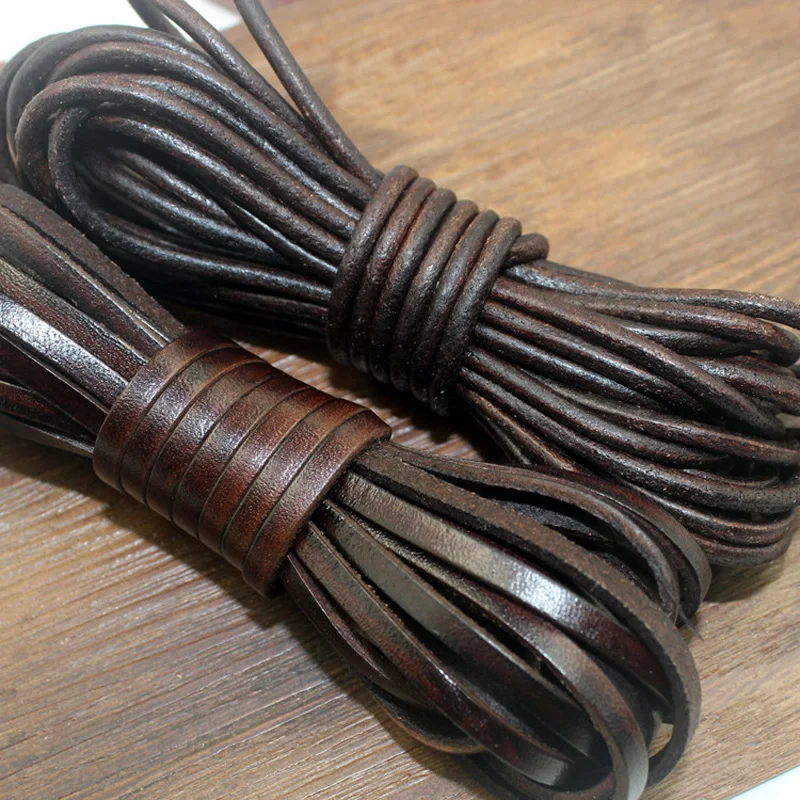 Ретро коричневый черный верблюжий шнурок из натуральной кожи круглый плоский веревочный шнур для DIY ожерелья Браслет Ювелирный шнур