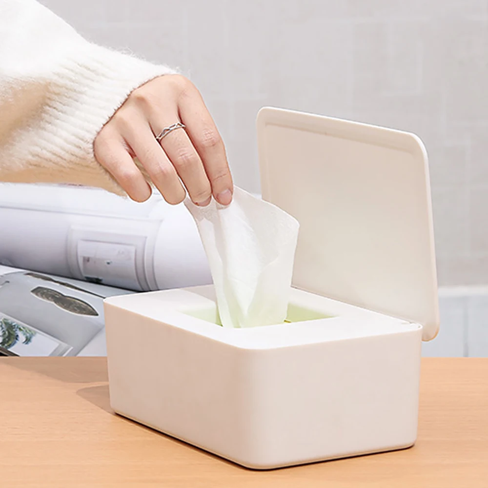 1. Открытие коробки влажных салфеток является большим, и конструкция уплотнения с крышкой не легко попадает в пыль и сухие влажные салфетки и т. Д.! Простые в использовании даже мягкие салфетки