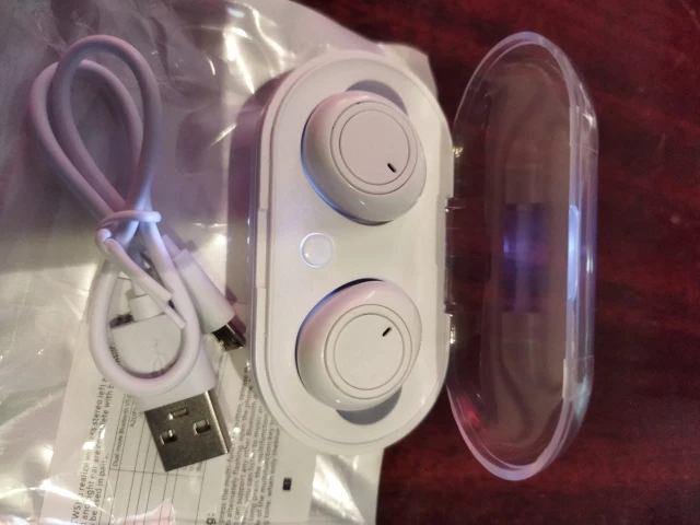 1 распакуйте и поместите наушники влево и вправо в зарядный отсек. Гарнитура горит красным цветом. Если он не горит, пожалуйста, заряжайте аккумулятор.