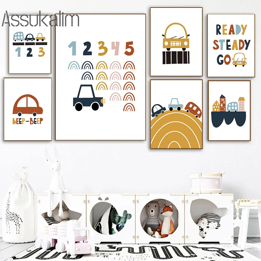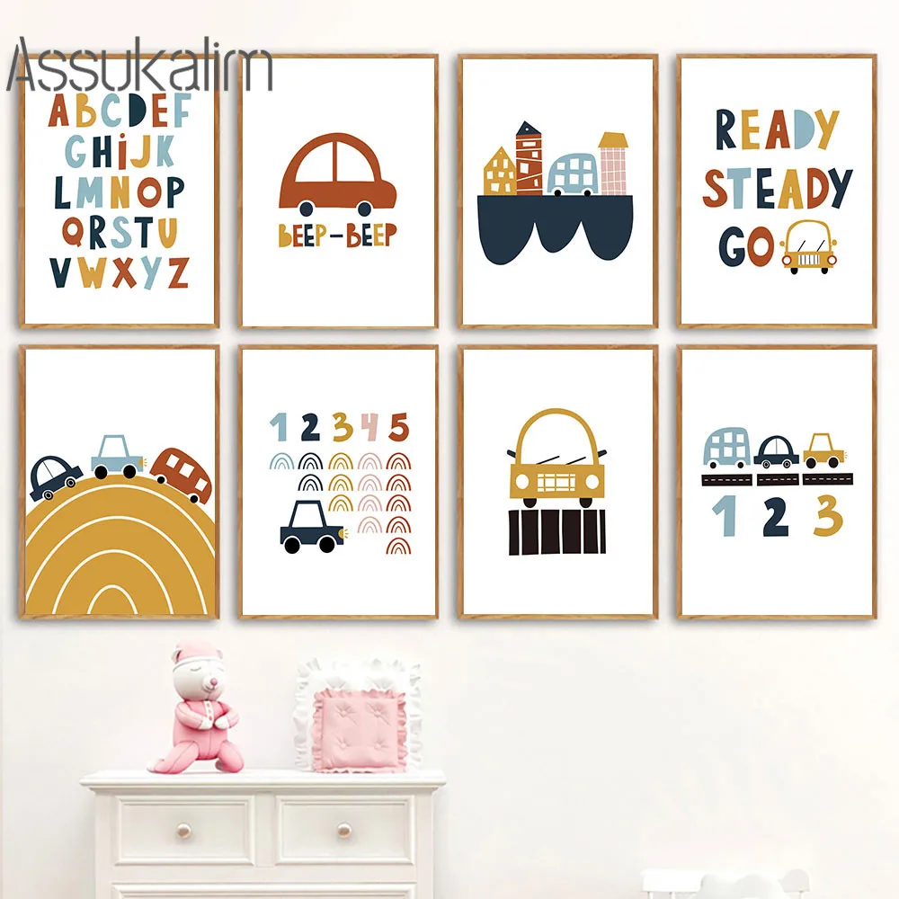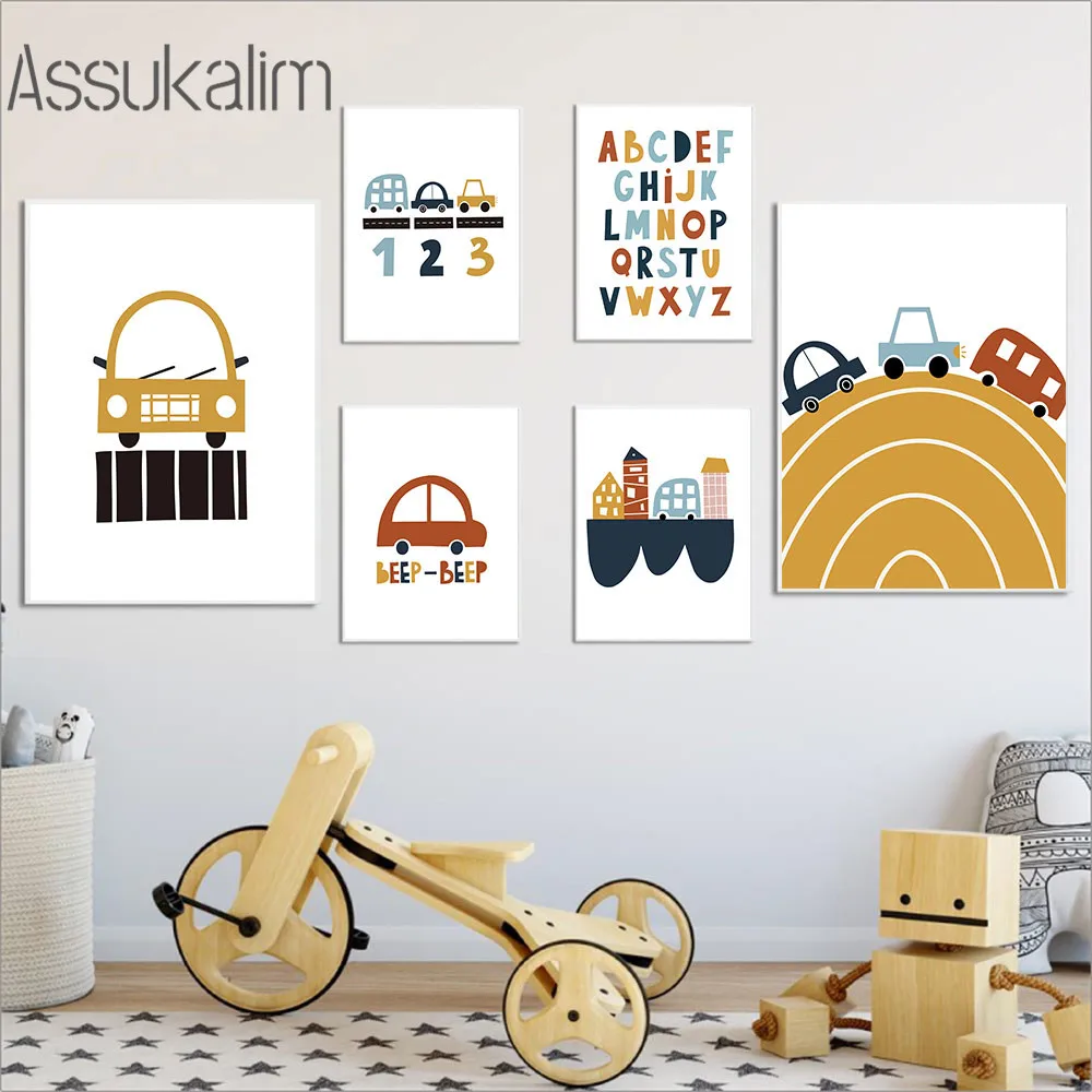 ABC постер игрушка Car Wal Художественная Картина на холсте для детской, Художественная печать, Мультяшные плакаты, настенные картины в скандинавском стиле для детской фотографий