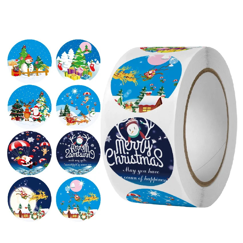 Новогодние наклейки-этикетки, 500 шт.рулон, 1 дюйм, Мультяшные круг...