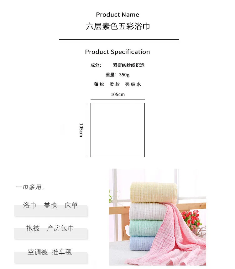 Одеяло для новорожденных из бамбукового хлопка, 6 слоев