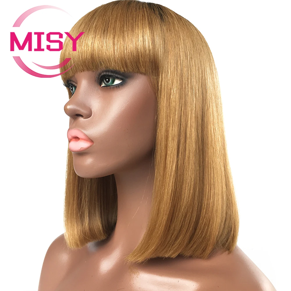 Парик из человеческих волос омбре с челкой, парики без клея в полной машине, прямые цветные парики для женщин, бразильские волосы Remy