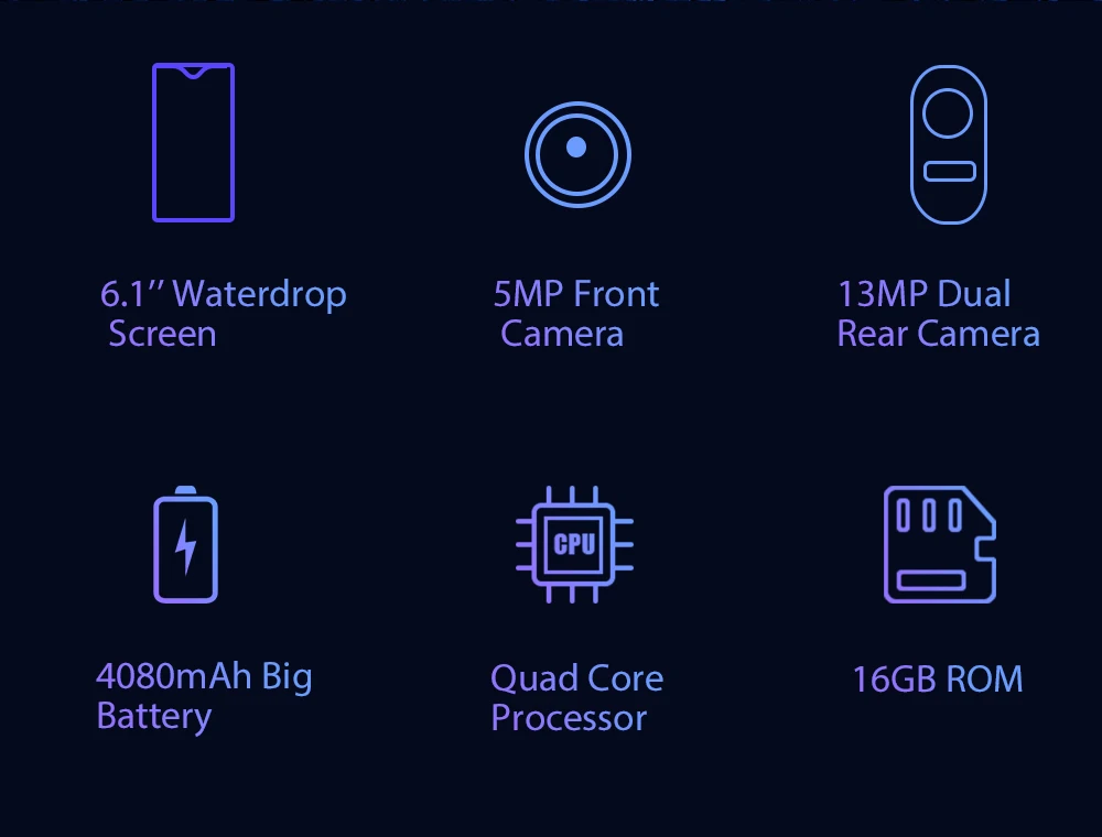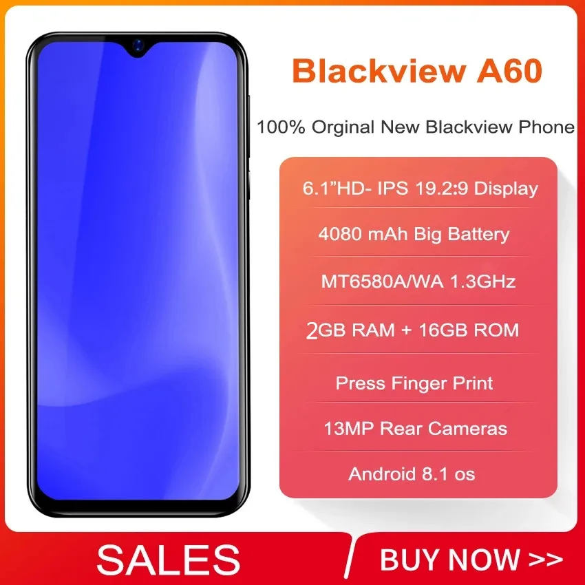 Blackview A60 смартфон 4 ядра процессор 4080 мА батарея мобильного телефона 16GB 6,1 дюймов 19,2: 9 Экран двойной Камера 3G мобильный телефон