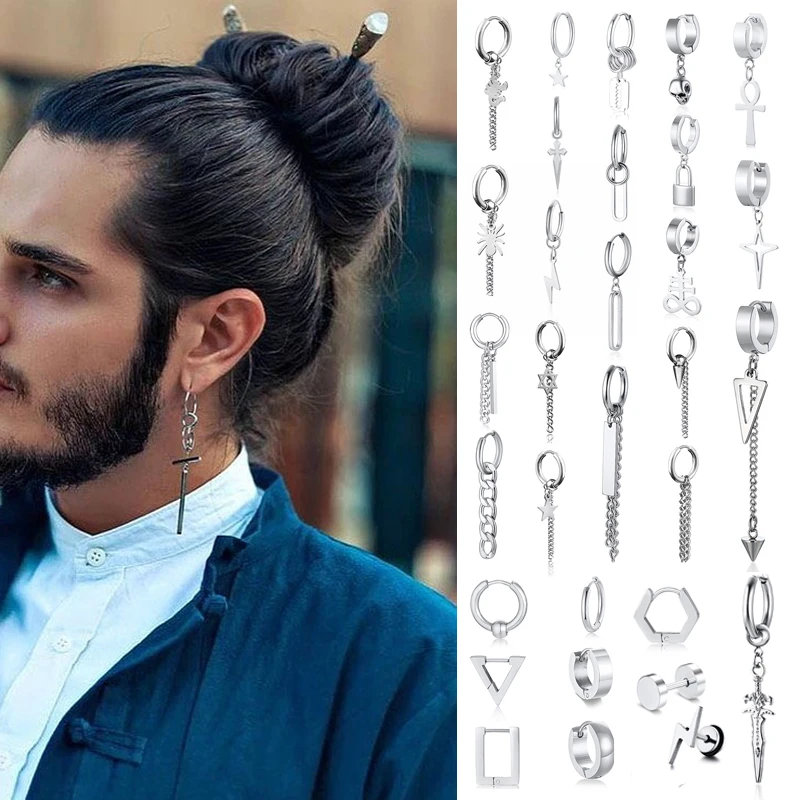 Серьги мужские s, несколько пирсинг Huggie обручи серьги, изящные из нержавеющей стали одиночные серьги-гвоздики мужские ювелирные изделия