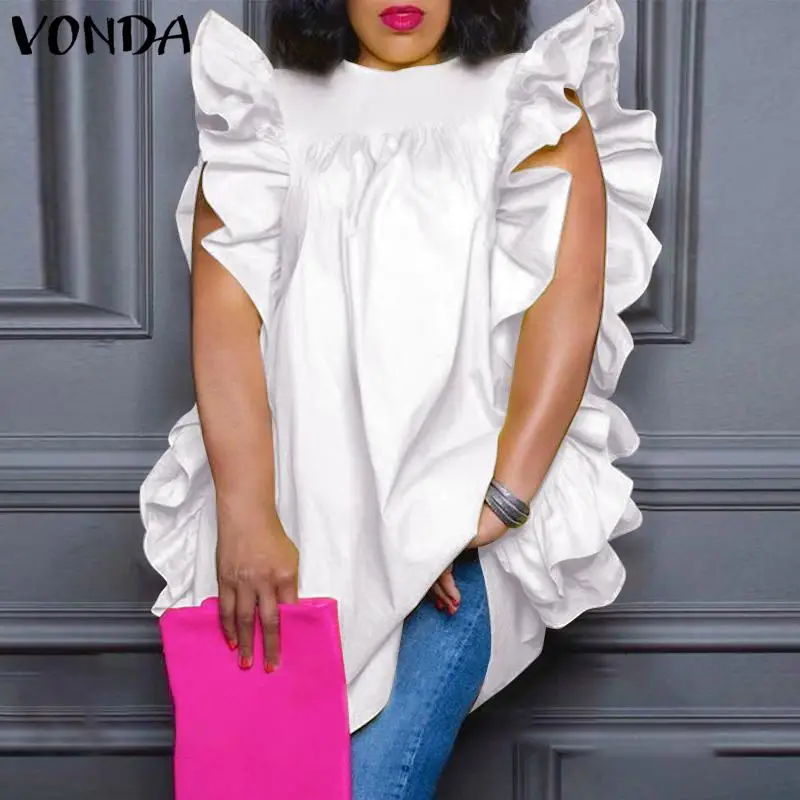 Женская блузка VONDA 2022, богемные рубашки, сексуальные майки, Женская винтажная Блузка с оборками, пляжные праздвечерние чные блузки большого размера
