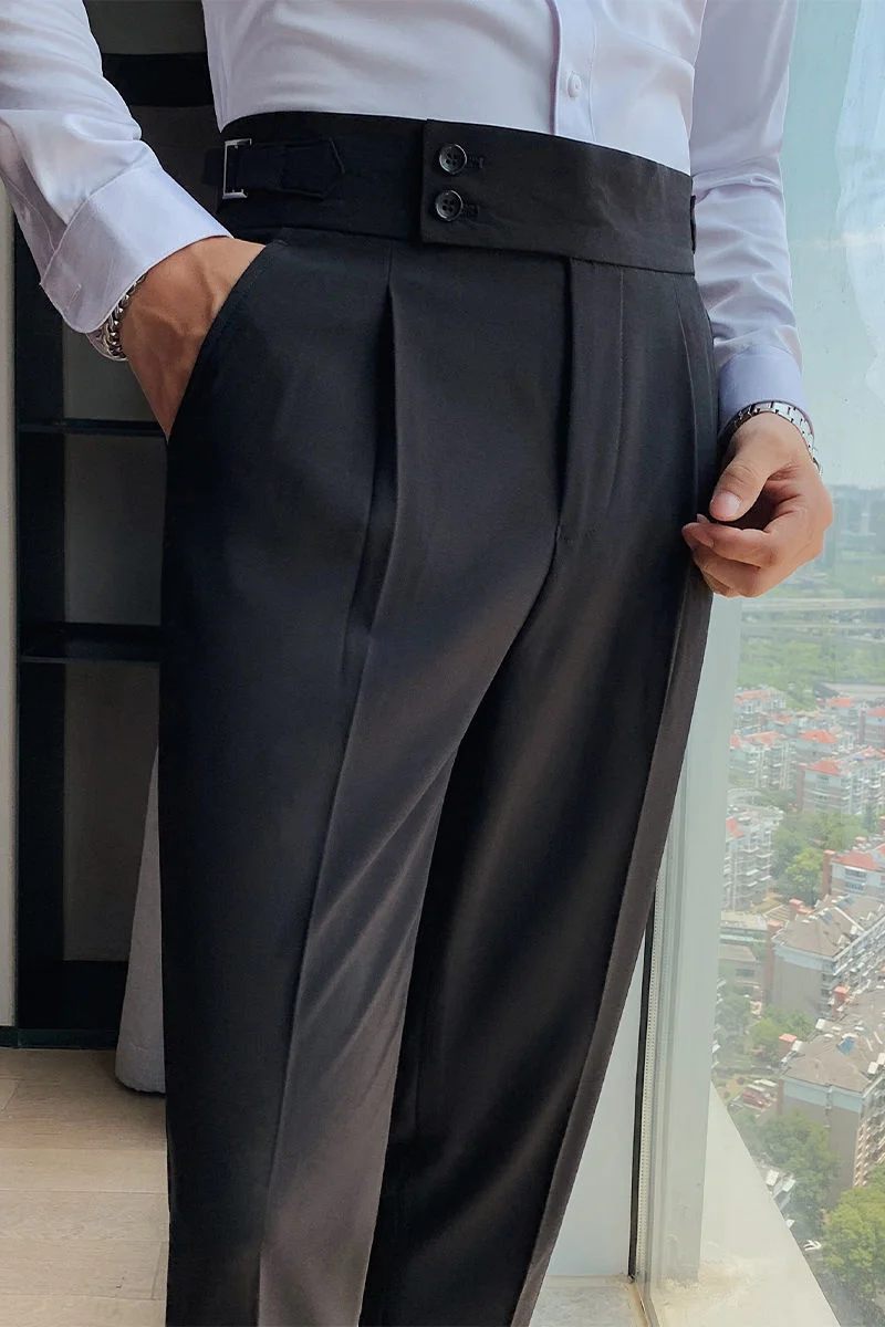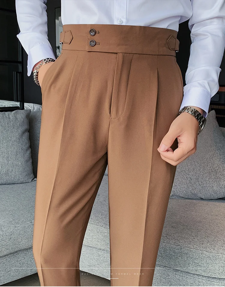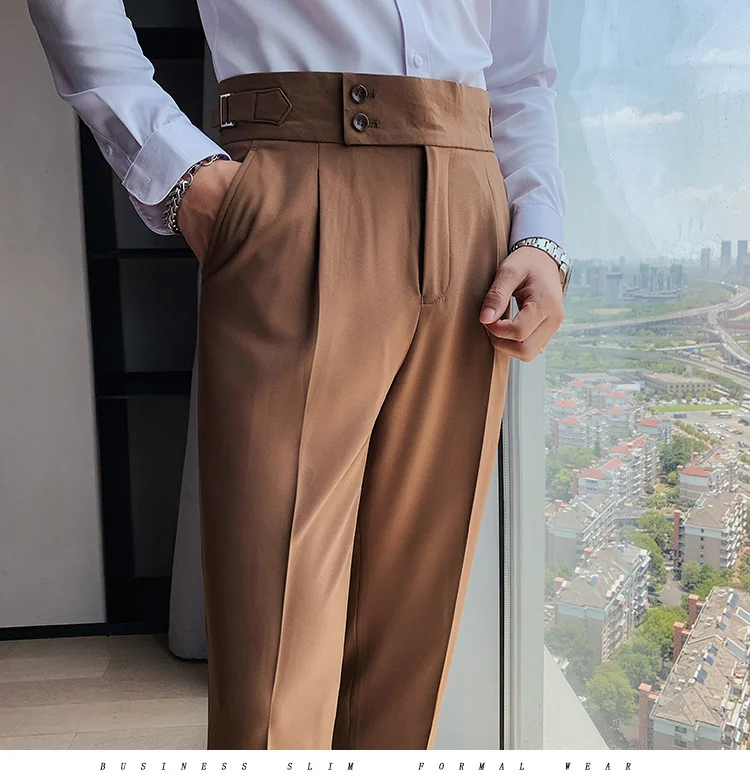 Мужские брюки с завышенной талией, однотонные английские деловые по...