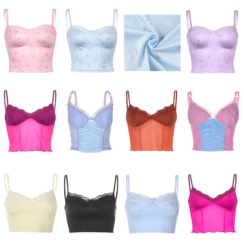 Y2K эстетические милые цветочные топы Женский с кружевной отделкой ...