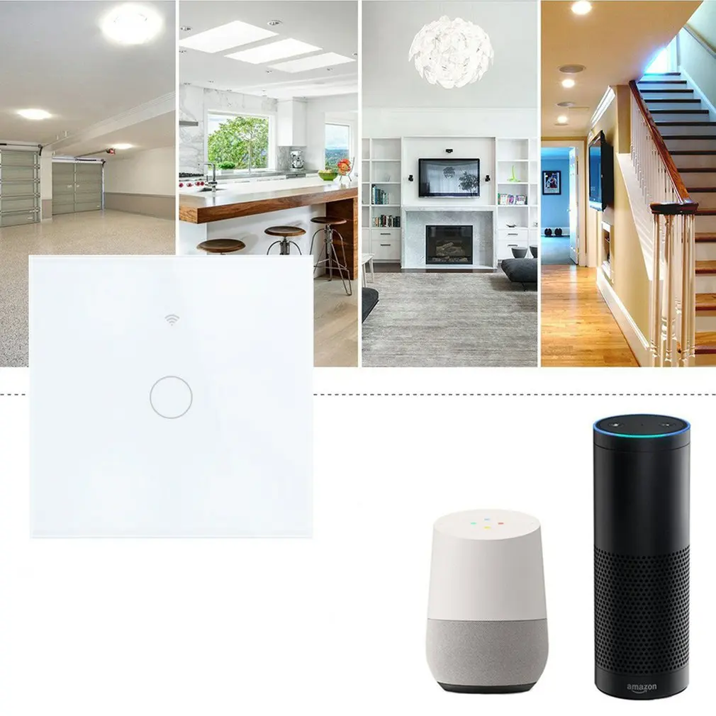 Сенсорный выключатель EsooLi Tuya Smart Life со стеклянной панелью, ЕСВеликобритания, голосовое управление нулевойодиночной линией огня, беспроводной настенный выключатель