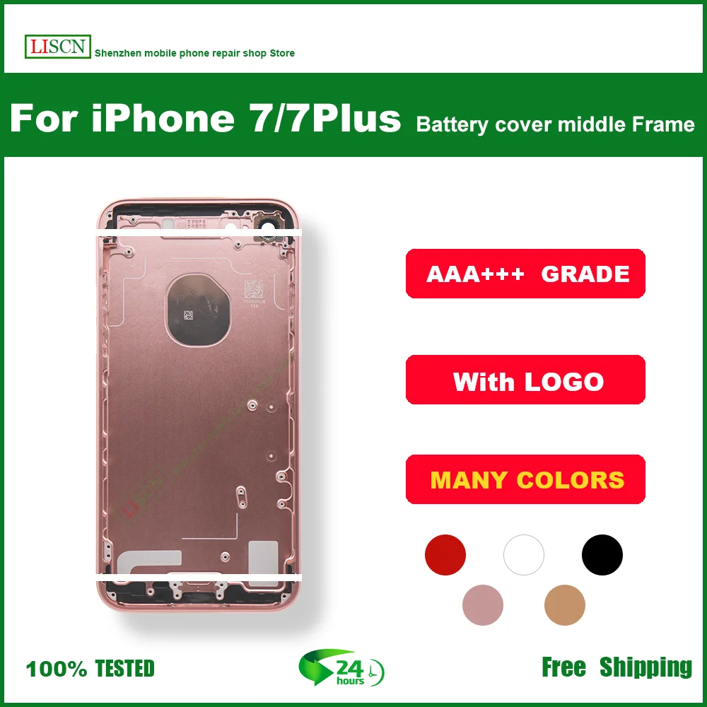 Задняя крышка батарейного отсека + средняя рамка корпуса + лоток для SIM-карты + Корпус для боковых ключей без гибкого кабеля для iPhone 7, 7Plus