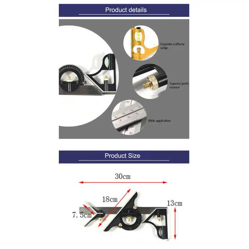 Квадратная линейка из нержавеющей стали, регулируемая скользящая комбинированная квадратная линейка и транспортир, набор для измерения уровня, 4 шт.