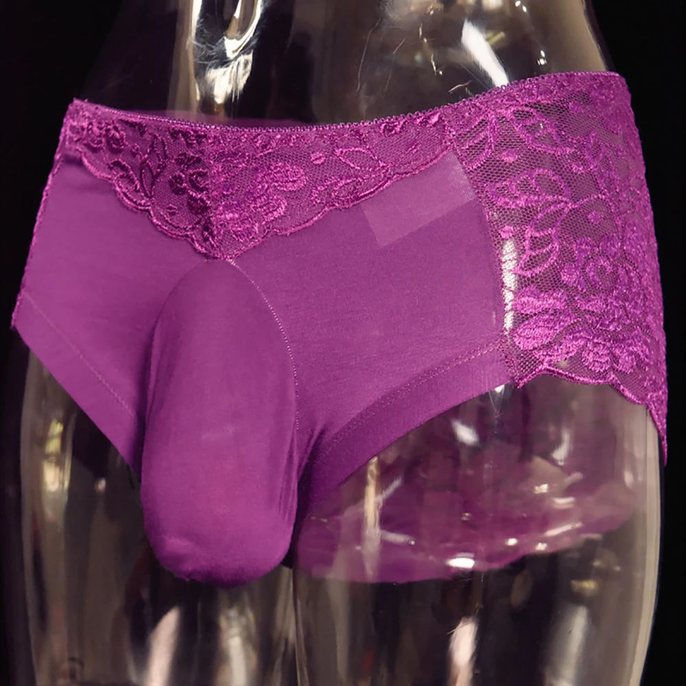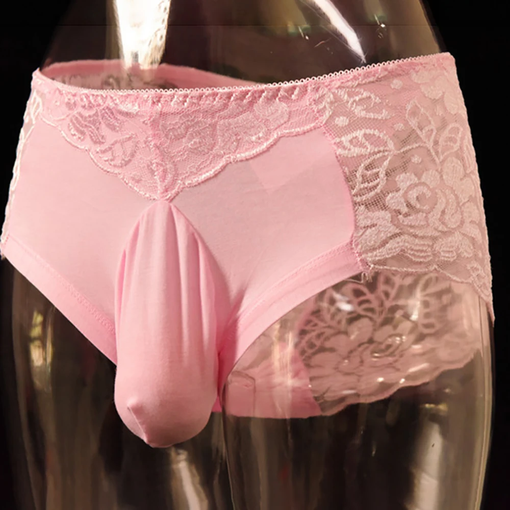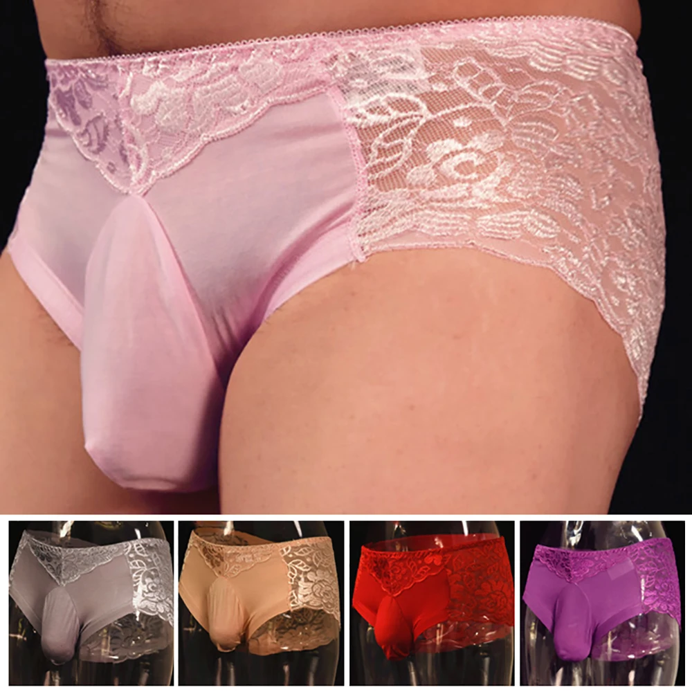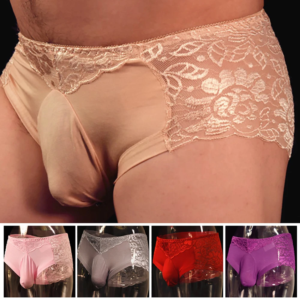 Мужские сексуальные кружевные дышащие трусы со средней посадкой, Прозрачное нижнее белье, мужские трусы с карманом, прозрачные брифы