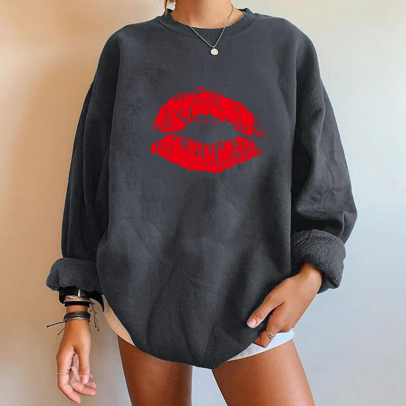PatternRed Lips Print Long Sleeve Sweatshirts