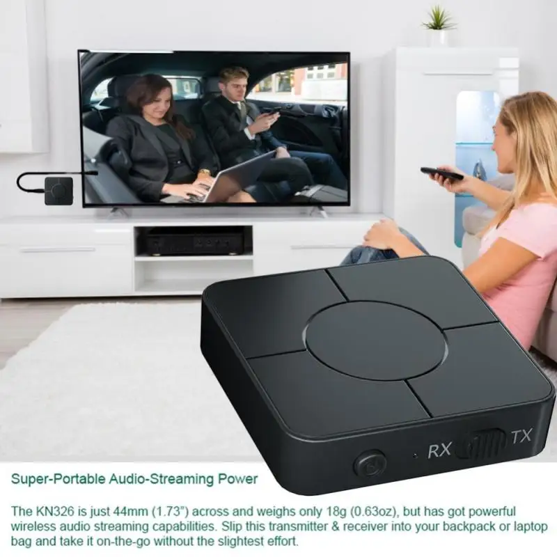 4. Портативное потоковое аудио Питание: аудиоадаптер для KN326 всего 44 мм (1,73 дюйма) и весит всего около 18 г (0,63 унций), но имеет мощные беспроводные возможности потоковой передачи звука. Вставьте этот передатчик и приемник в рюкзак или сумку для ноутбука и возьмите его на ходу без каких-либо усилий.
