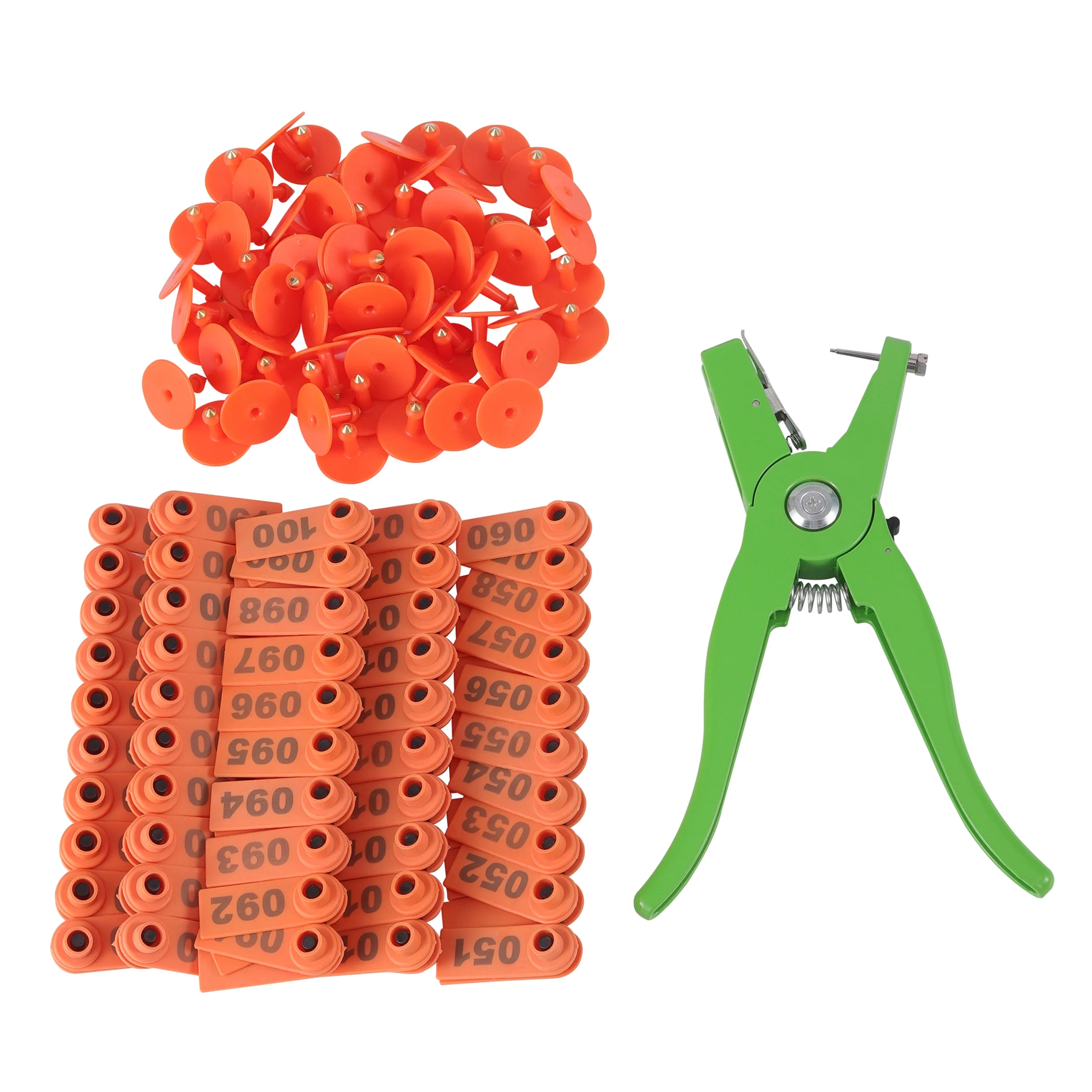100 комплектов вывесок для ушей овец + ушной гвоздь (номер 001 ~ 100)