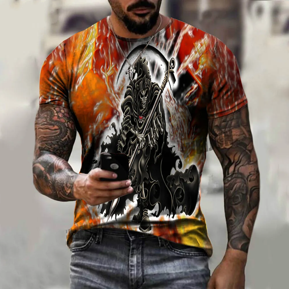 Мужская футболка с готическим 3D-принтом, Летняя Повседневная рубаш...