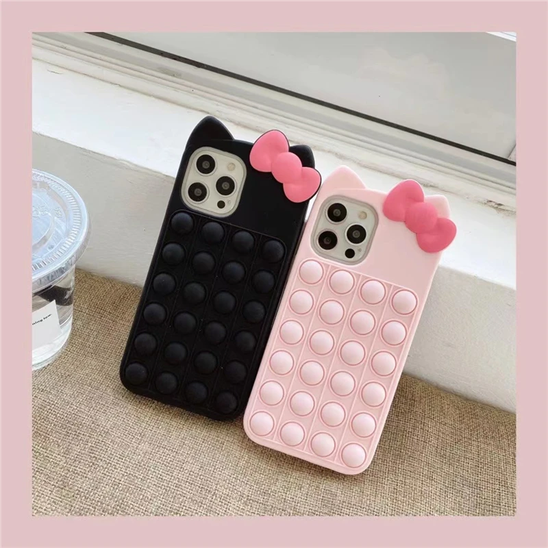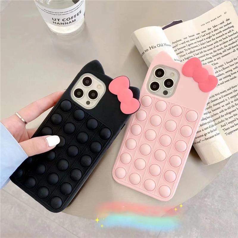 Супермилый мультяшный 3D чехол для телефона с котом и розовым бантом для iPhone 11 12 13 Pro XS Max X XR 7 8 Plus SE Kawaii, Мягкая силиконовая задняя крышка