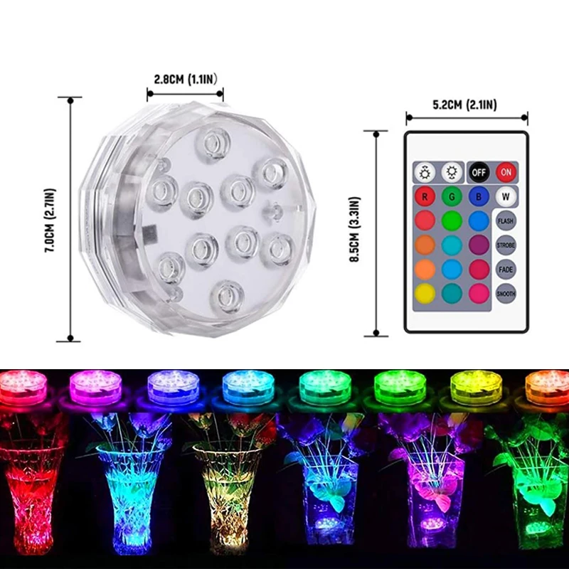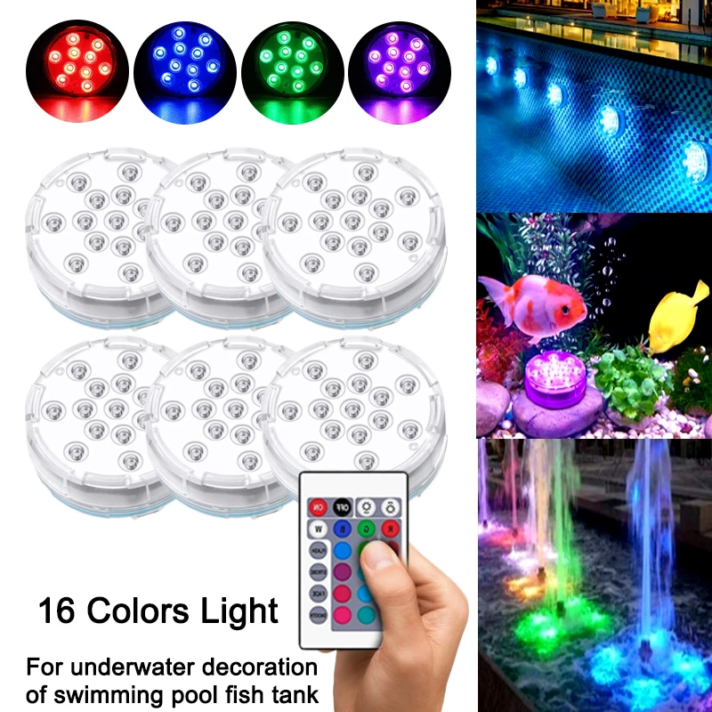 Погружной светодиодный ночник для плавания в бассейне, подводный RGB-светильник с 10 светодиодный одами и дистанционным управлением, работает от батареи, точечный светильник, украшение