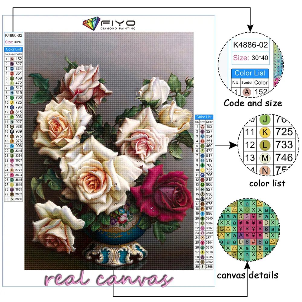 FIYO камни в форме ромбакруглый дрель 5D DIY алмазная живопись "Роз...