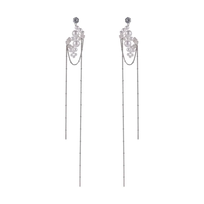 Название: преувеличенные длинные модные серьги с жемчугом и цирконием ins, корейский стиль 2021, трендовые серьги-подвески ювелирные изделия для женщин