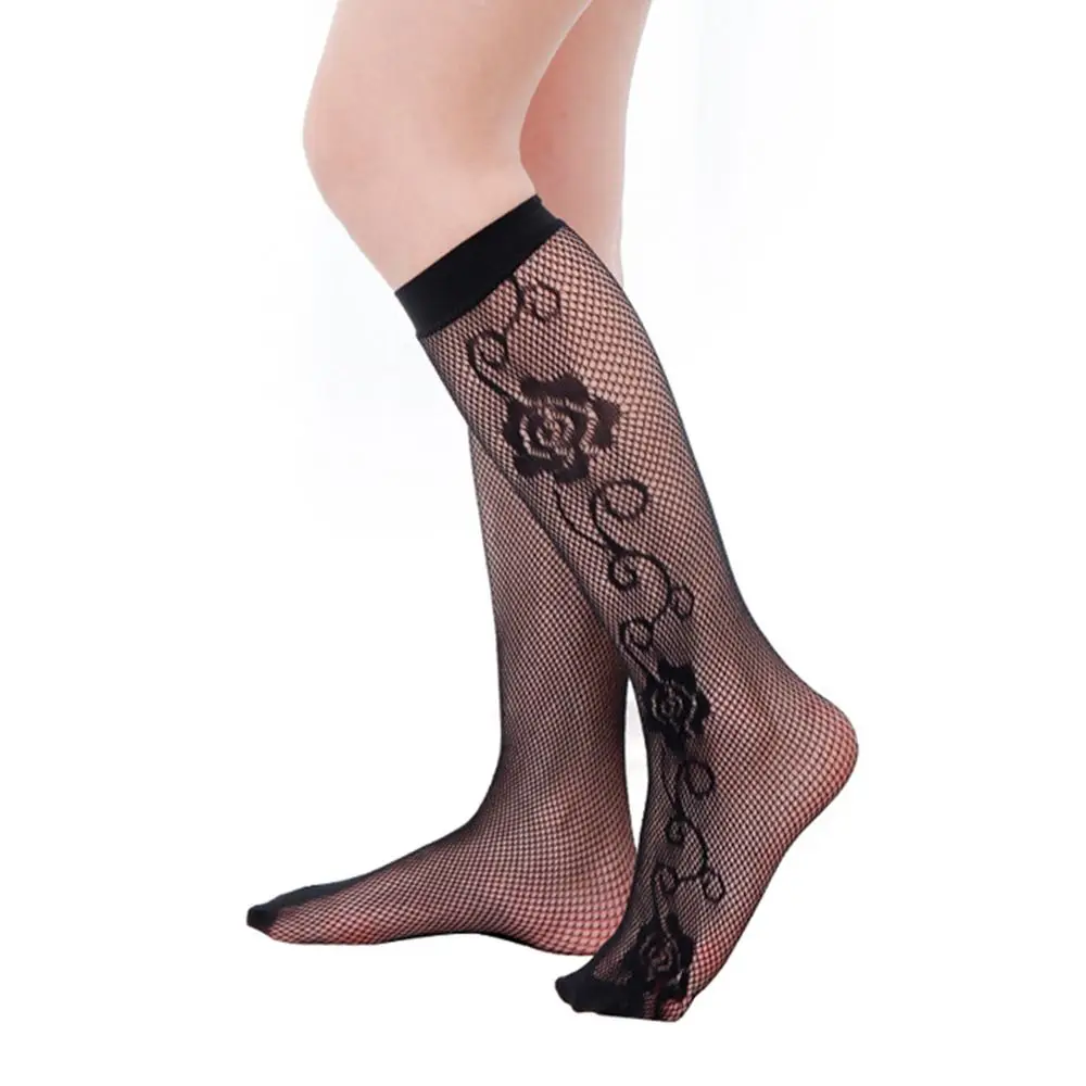 Женские кружевные пикантные жаккардовые ажурные чулки до колена, ажурные шелковые чулки, черные гольфы до колена